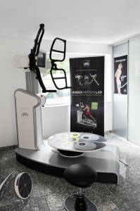 Das Huber Motion Lab besitzt eine Mobilisierungsplattform. Eine automatische Höhenanpassung an die Körpergröße erfolgt über die bewegliche Corpussäule, die zusätzlich während der Übungen die Koordinationsfähigkeit herausfordert. Die Kraftmessung findet über spezielle Sensoren an den Handgriffen statt.